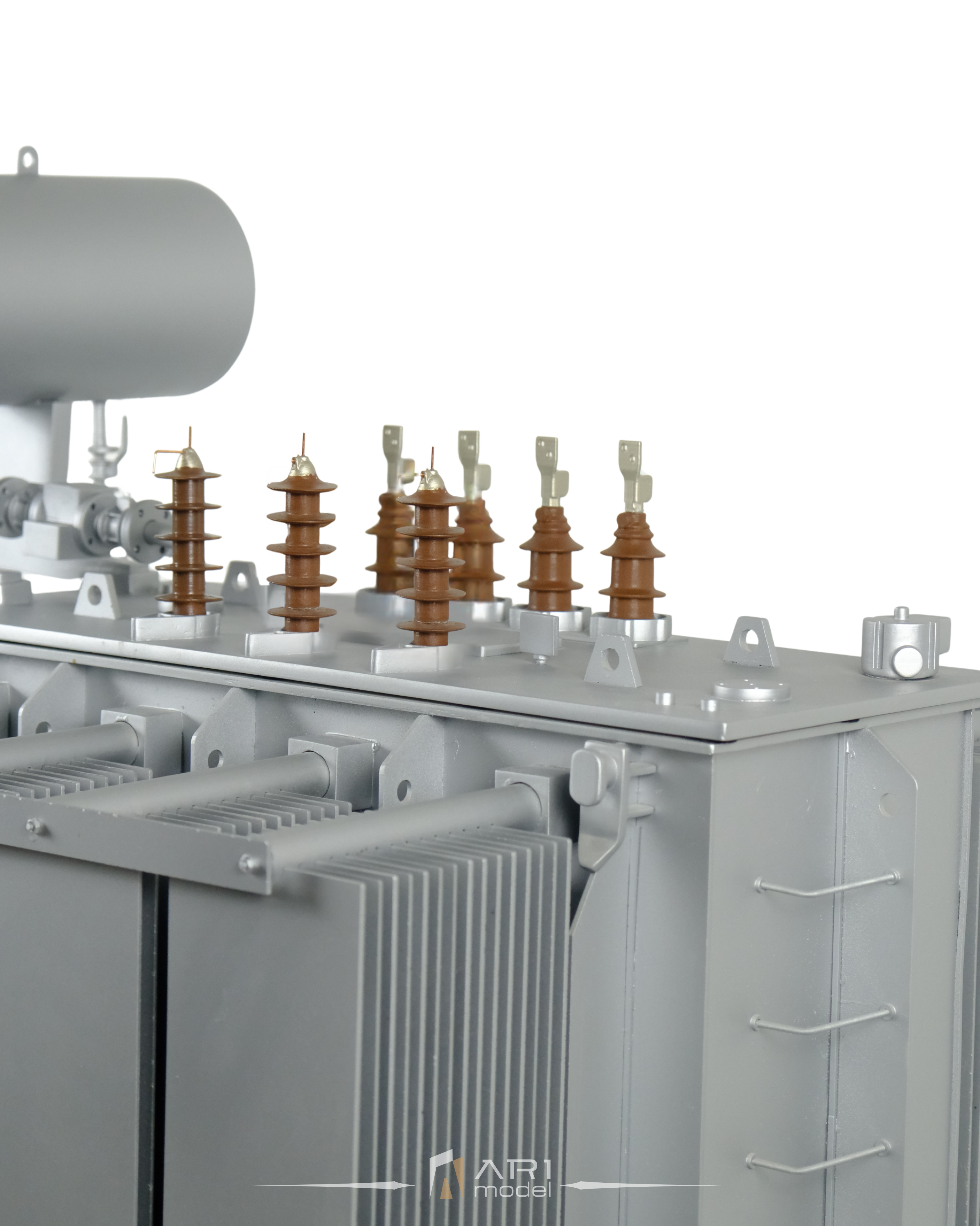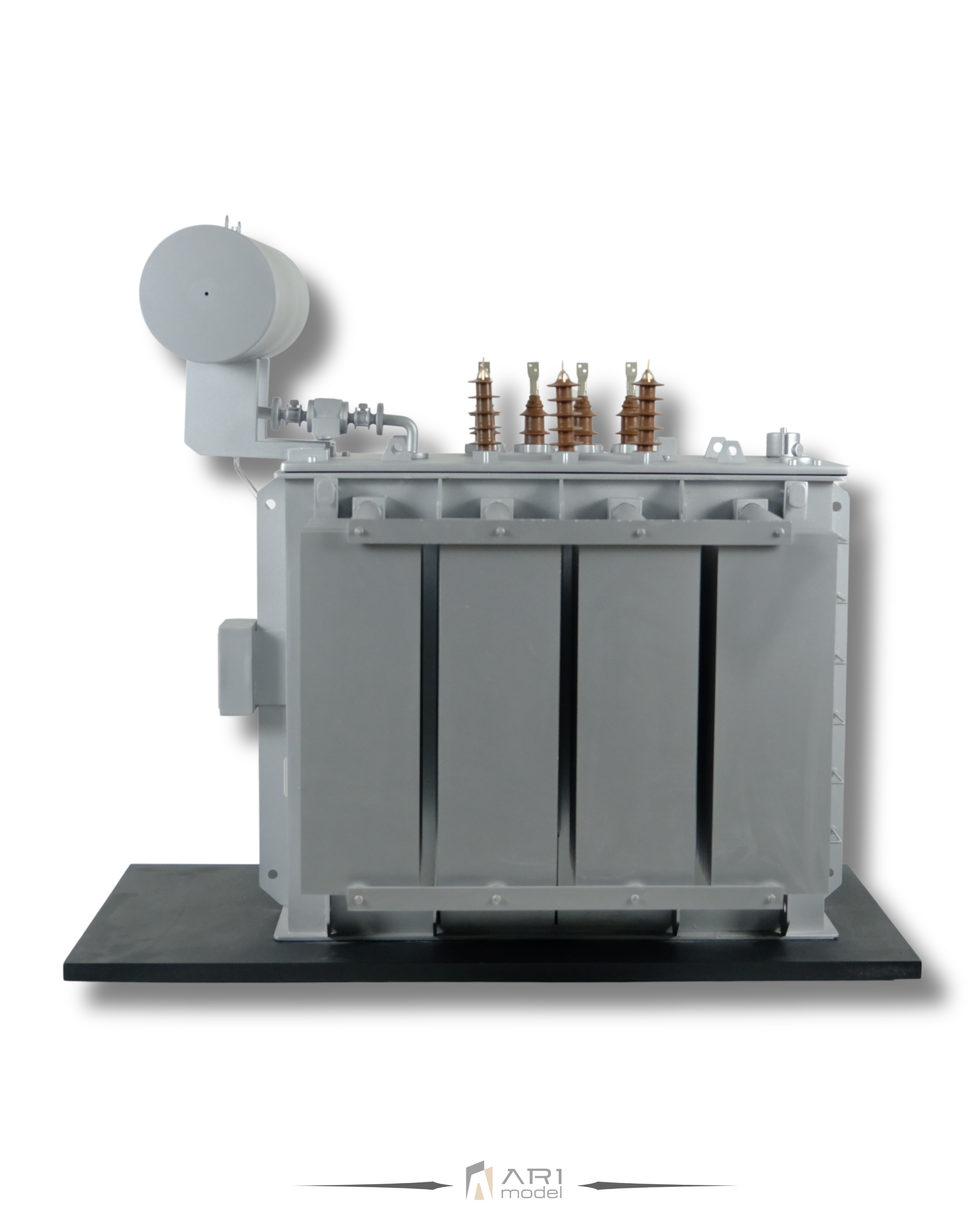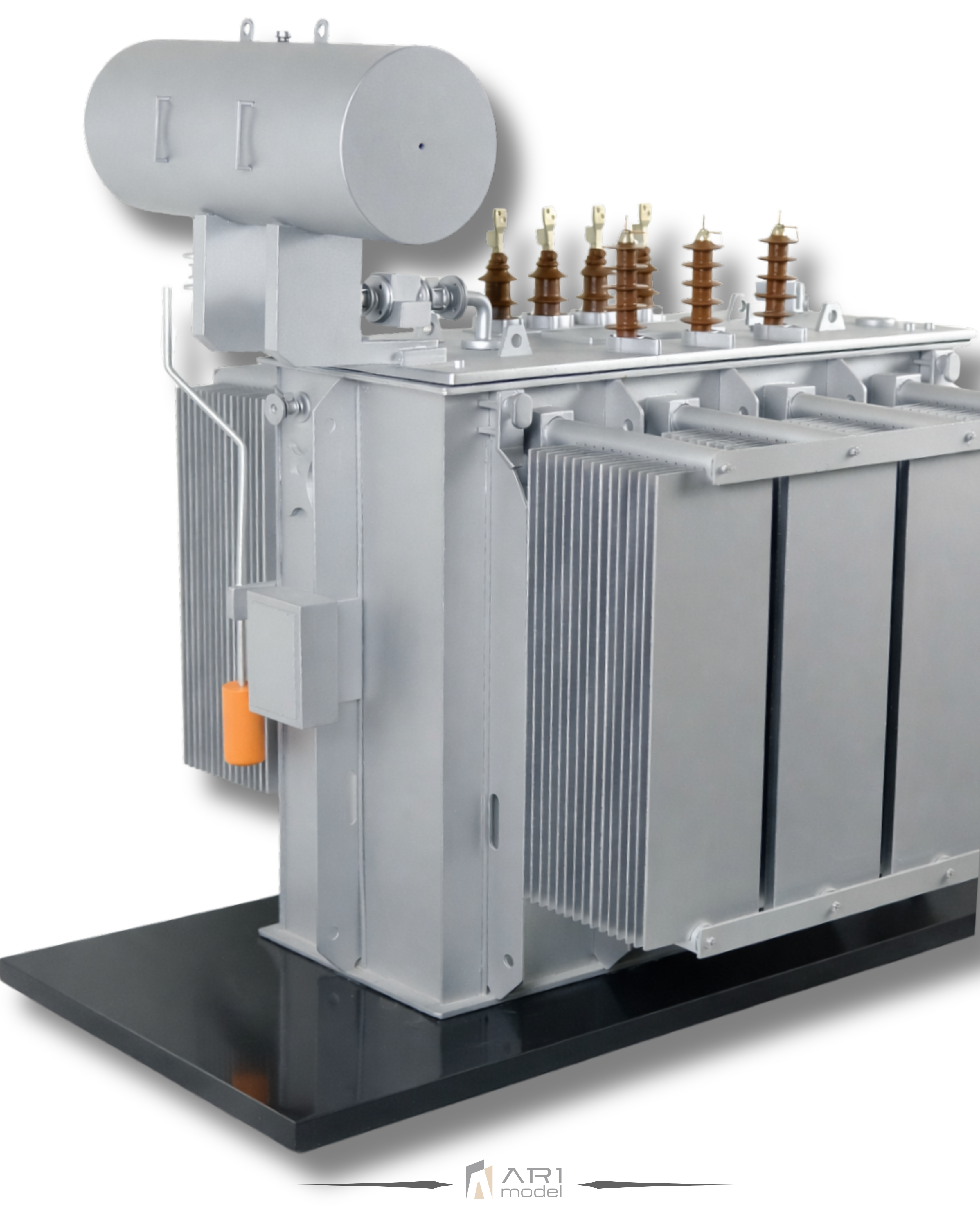 Ogni componente del modello di trasformatore sviluppato da ARI Maquette si basa su riferimenti tecnici reali. Dai pannelli di raffreddamento agli isolatori, fino alle proporzioni strutturali, ogni dettaglio riflette la logica del design industriale.