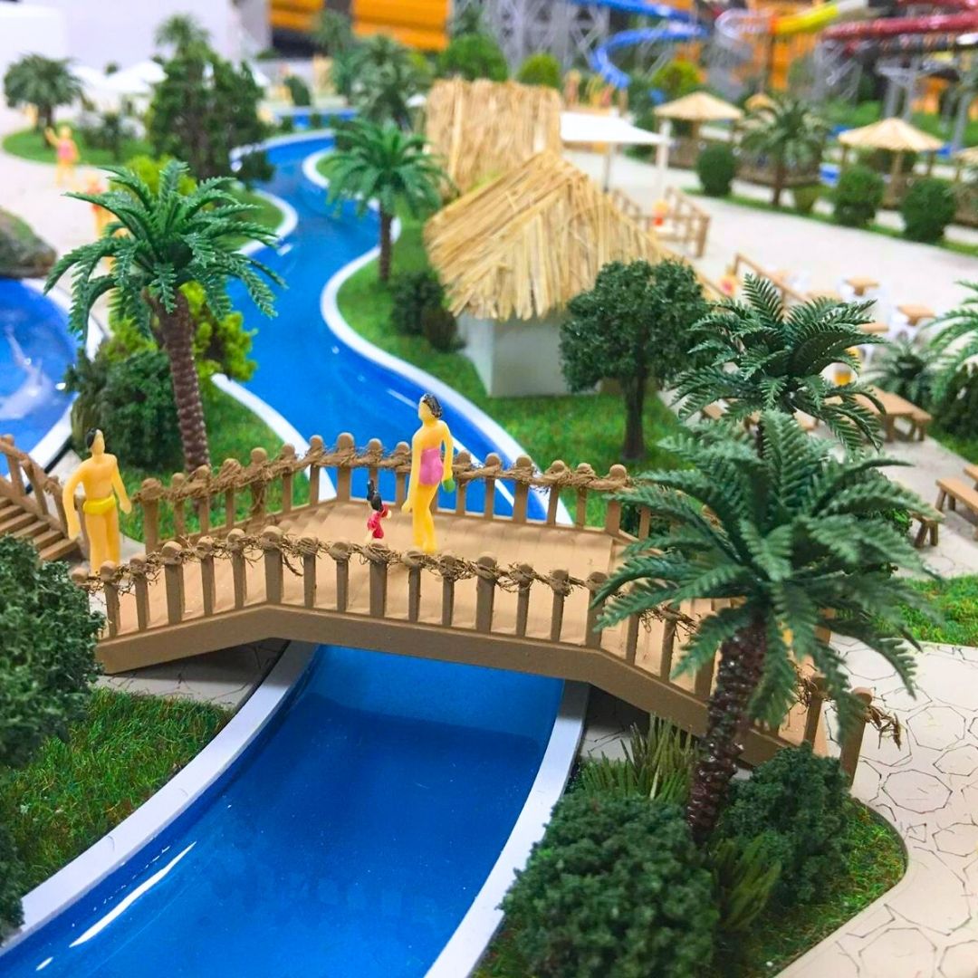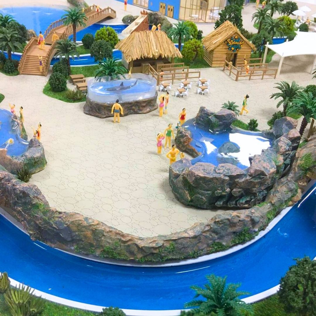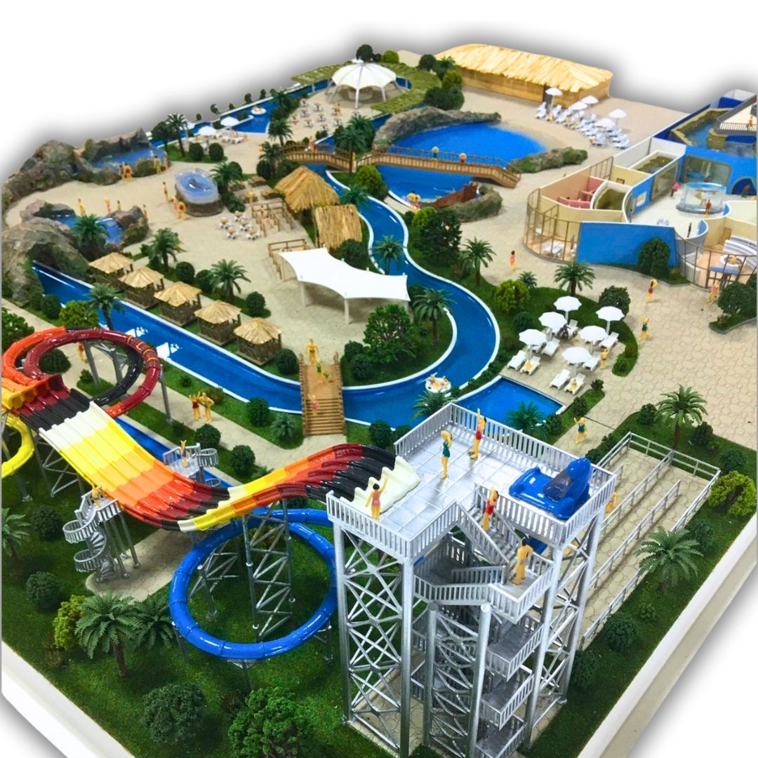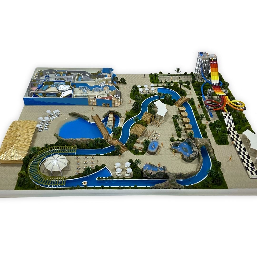 Questo parco acquatico attira l'attenzione con le sue diverse aree a tema. Ospita scivoli d'acqua colorati, un misterioso acquario con pesci oceanici, zone d'azione cariche di adrenalina e piscine naturali, offrendo così una varietà di concetti. Abbiamo lavorato per riflettere questa diversità e questa atmosfera giocosa nella maquette, assicurandoci di catturare ogni dettaglio.